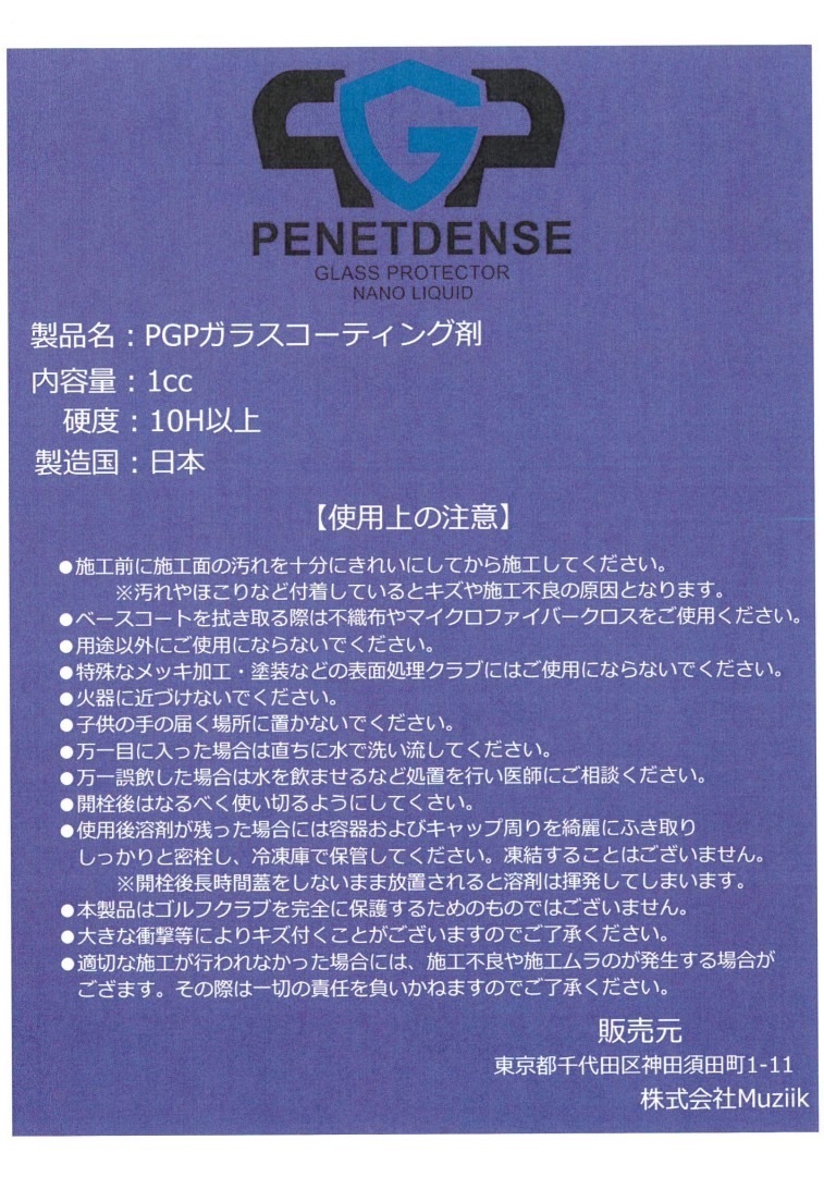 当ガラスコーティング剤は、ゴルフ工房、ゴルフ販売店様向けの製品となります。